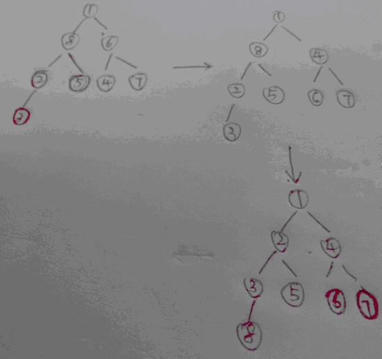 接着8与2换且与3换 最后1不换 就形成了最终结果 然后再中序遍历之